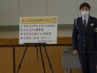 白山警察署、野々市交番、野々市市交通安全協会の皆さんにお越しいただいて自転車に安全な乗り方について教えていただきました。