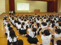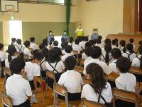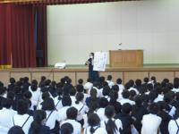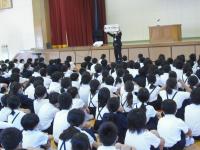 今日は5年生がピュアキッズスクールで白山警察署生活安全課のおまわりさんに万引きやいじめがあるとどうなるかのお話をしていただきました。