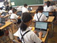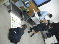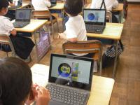 ICTサポーターに教えていただきながら、自分の描いた魚を動かすプログラミングを行いました。