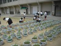 1年生はアサガオのリースづくりも終えて、今度はチューリップの球根を植えました。