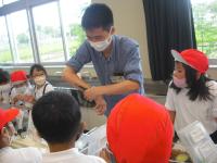 はじめは恐る恐る体験していた児童も緊張がほぐれ、半田選手と岩﨑選手に質問する姿が見られました。