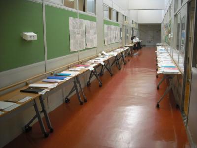 富陽小学校にも町内会の防災士、町会長さんが集まり、鍵の場所の確認や受付の作り方確認をしました。