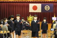 後期委員長の任命式、4年生のボディパーカッションが披露され拍手につつまれました。