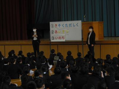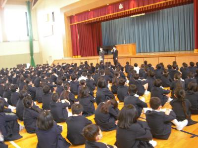 全校集会では、中川先生から日本一の挨拶になるためのお話、