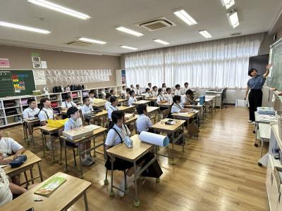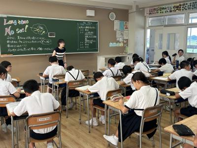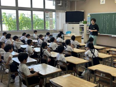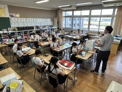 4年3組です。担任の先生がクイズを出し、