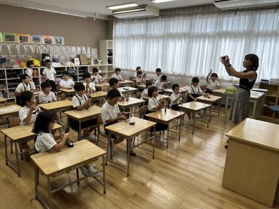 2年1組です。目を輝かせて先生の説明を聴いています。