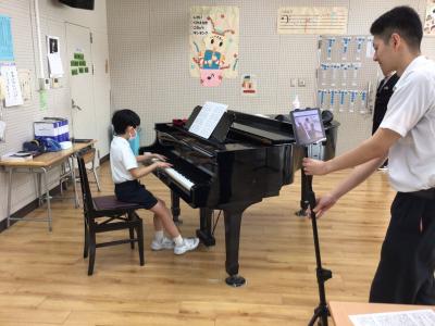 富陽小の子供たちは、配信している音楽室は離れているのだけど、