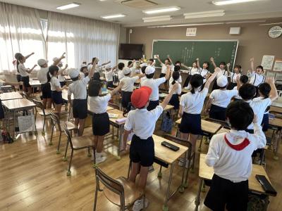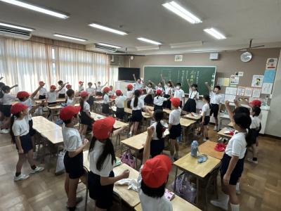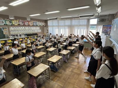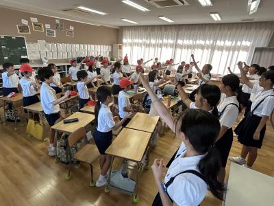 10月1日(火)の朝自習の時間は、6年生が低学年の教室に出向いて、応援練習をしました。