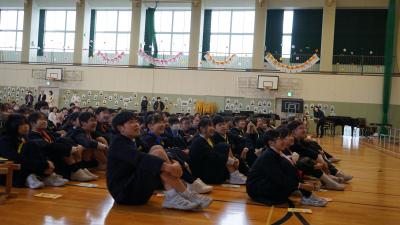 昨年度は、密を防ぐため、学年別のローテーションで行っていましたが、今年度は全校が体育館に集まりました。