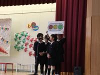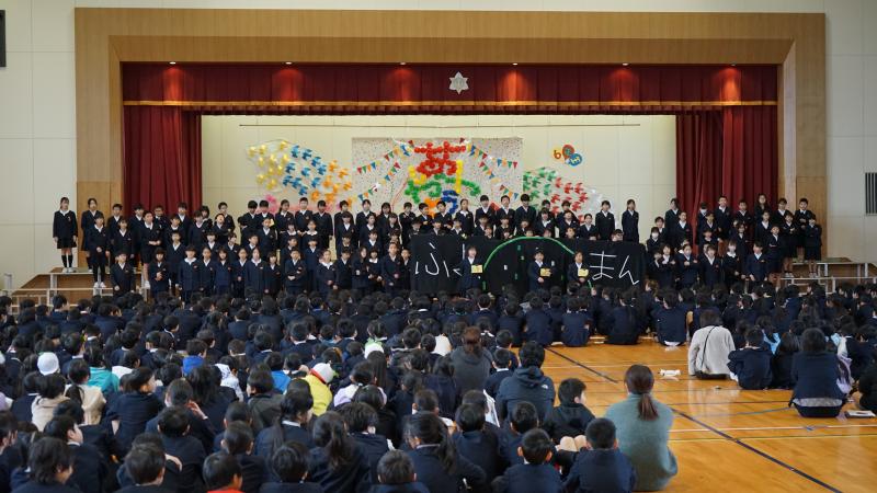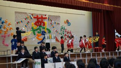 5年生の子供たちが作って、体育館の壁面に掲示をしてくれました。