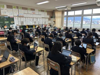 低学年の頃から、学習で端末を使用している5年生は、使用に慣れています。