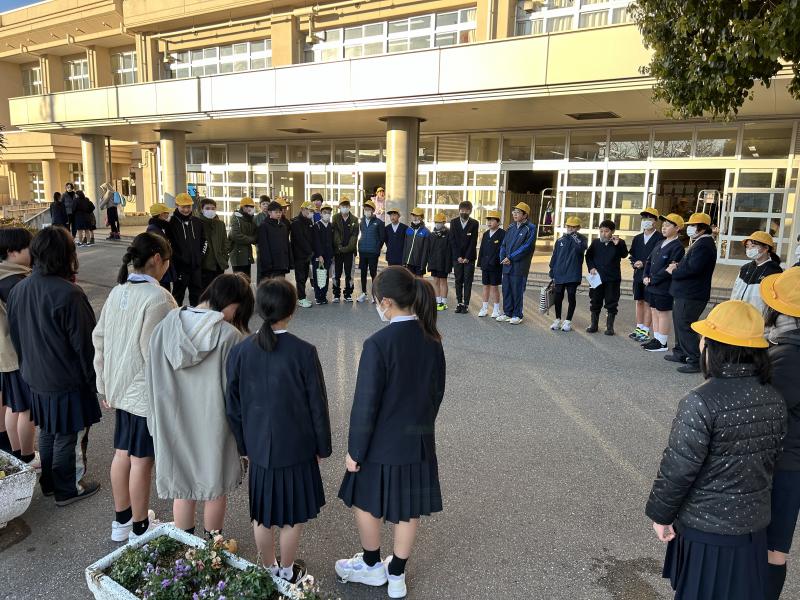 上の写真は、あいさつ活動が終わって、解散のあいさつをしているところです。