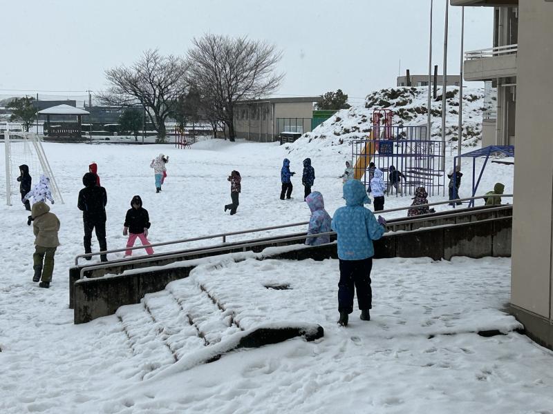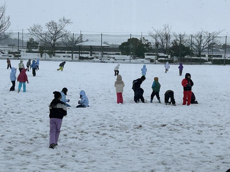 1月26日(金)、1限目に雪遊びをしている3年生の様子です。