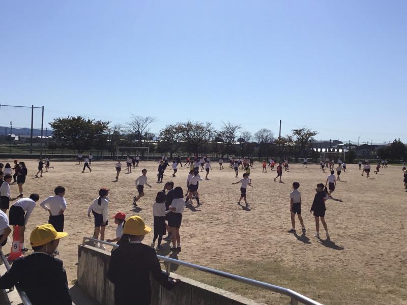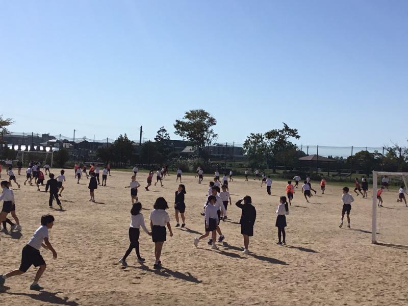 久しぶりの青空の下、運動場いっぱいに走り回っていました。