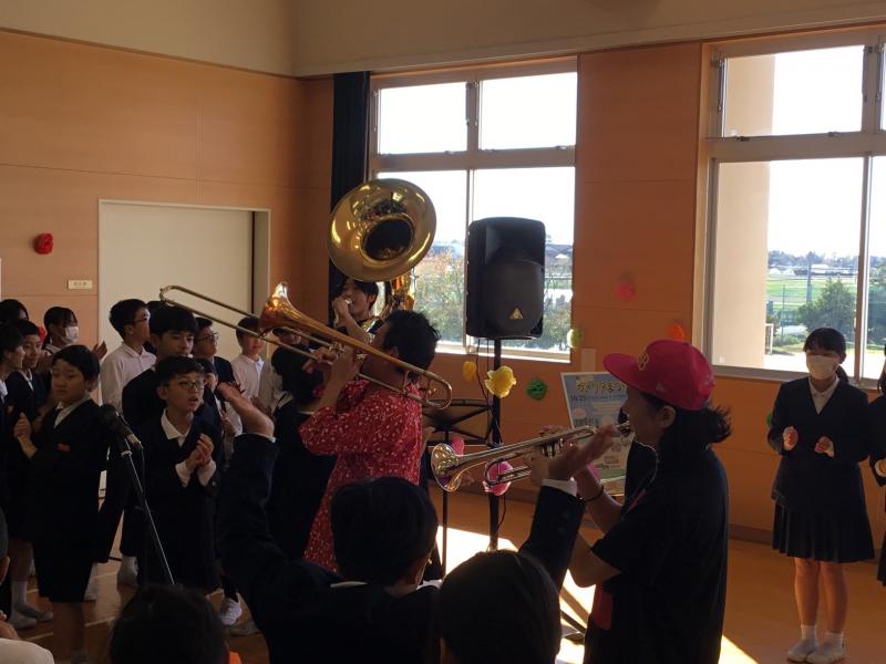 翌日の「野々市カメリアまつり」に出演するBLACK BOTTOM BRASS BAND(ブラック ボトム ブラス バンド)の皆さんが来校してくれたのです。