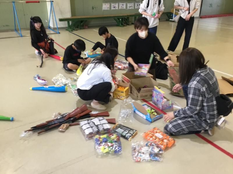 物販、お化け屋敷、ゆるふわランド、型抜き・お菓子釣り、射的・ヨーヨー釣り、軽食(うどん)・ドリンク、クイズスタンプラリーの各コーナーです。