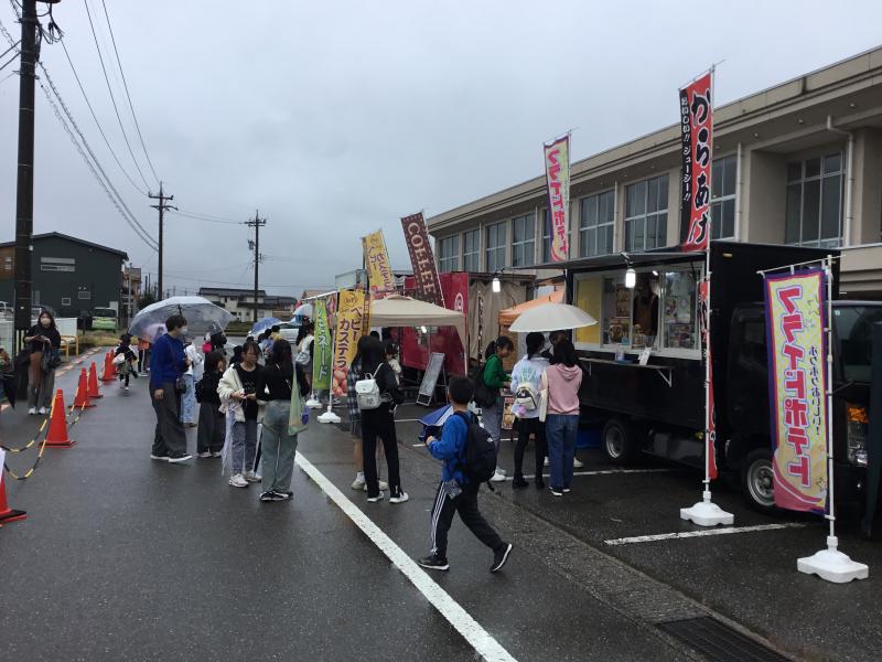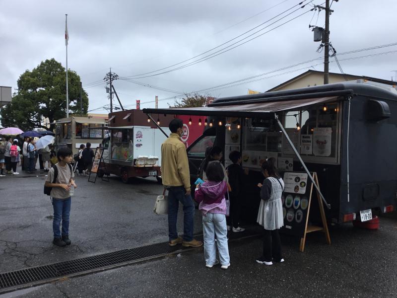 予報どおりの雨とはいえ 小降りだったので、屋外のキッチンカーにも列が伸びる盛況ぶりでした。