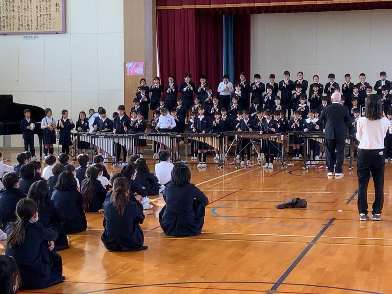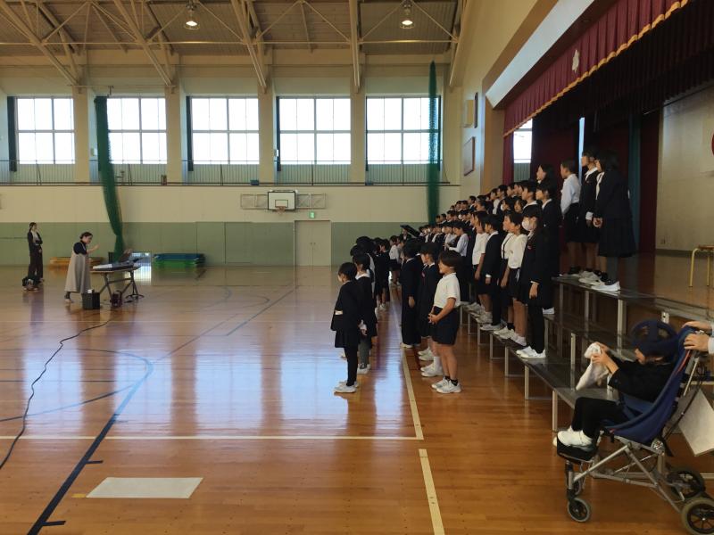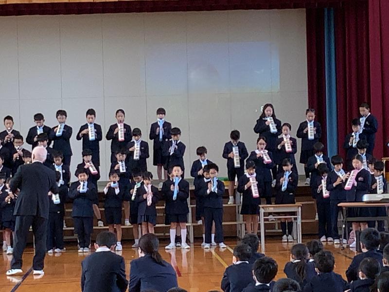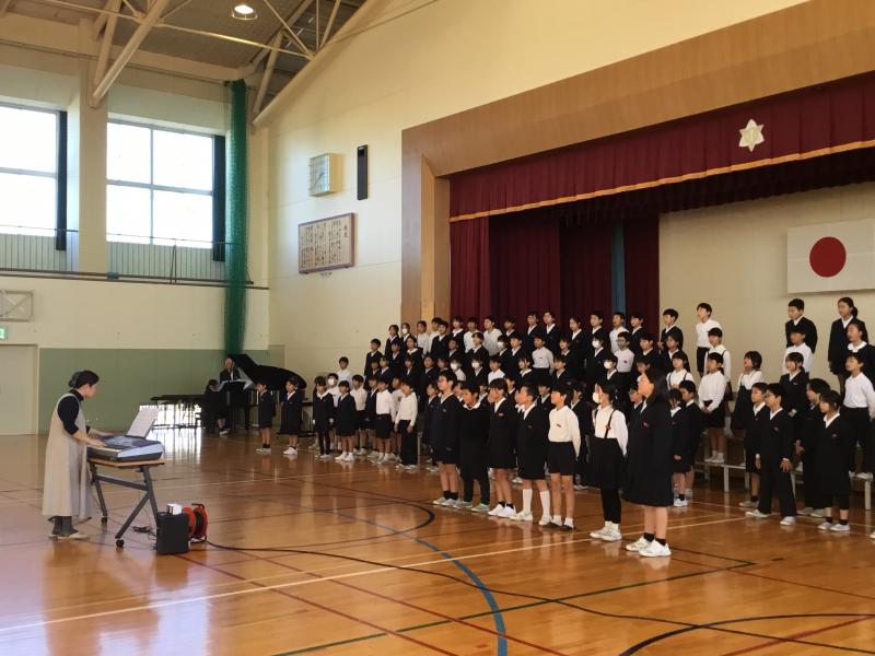 インフルエンザが流行っているため、全校朝会や2年生の発表は取りやめ、4年生の音楽発表だけを行いました。