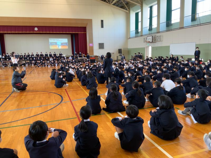 体育館には市音楽会を経験した5、6年生と来年経験する3年生が集まりました。