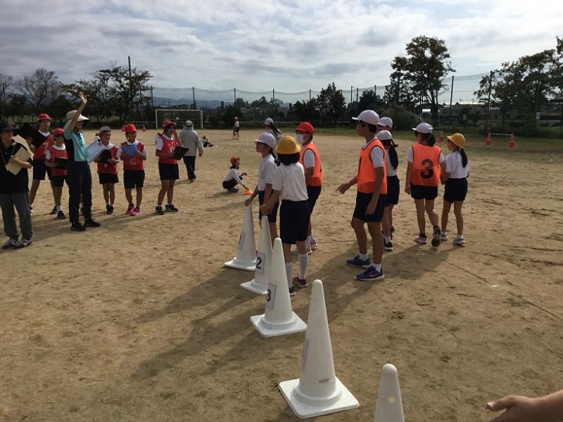 低学年までは直線を走ってきましたが、中学年からはトラックのコーナーを曲がりながら走ります。
