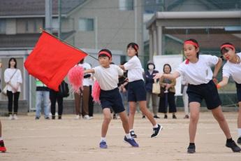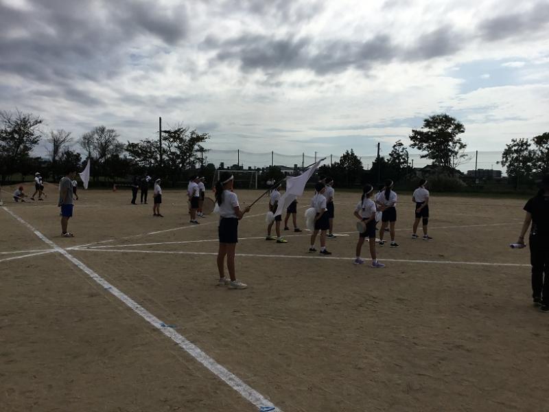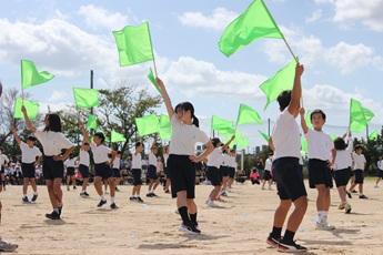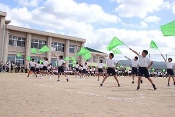 学年カラーのグリーンフラッグをはためかせ、まとまりのある演技でした。