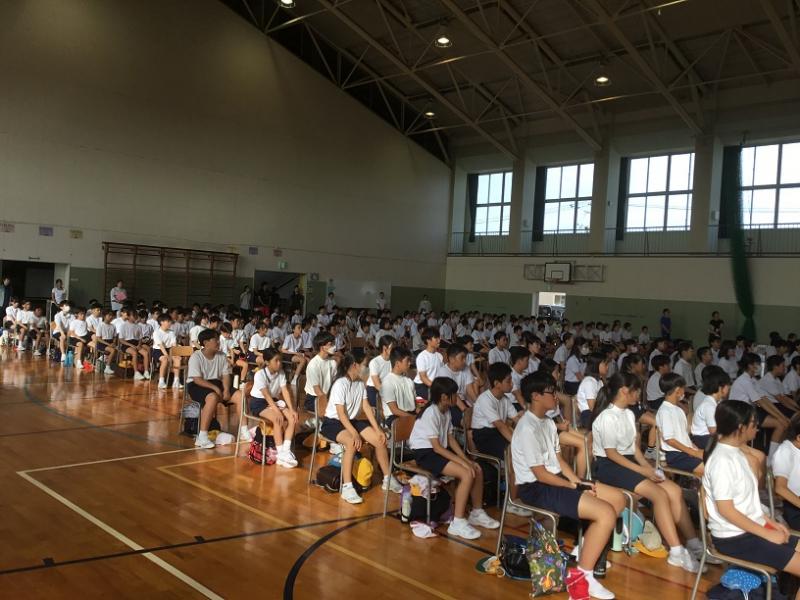 全員が教室に戻り、10分間の給水タイムを取りました。