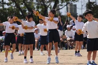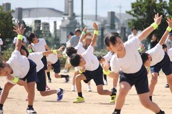 どの学年よりも早く運動場練習を始めた成果が元気いっぱいのダンスに表れていました。