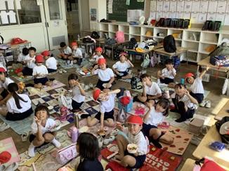 赤組の巻き返しがあるか、1年生もおいしいお弁当を食べて 午後の部も楽しみな昼休憩でした。