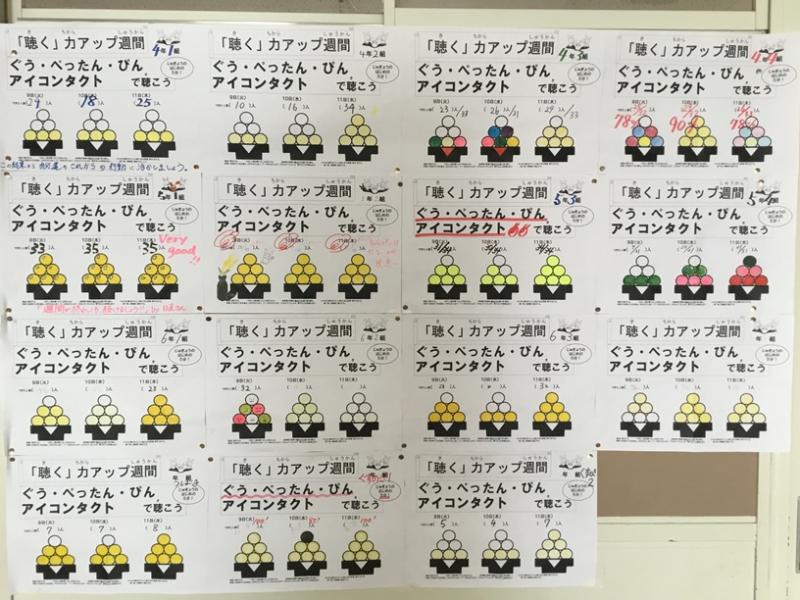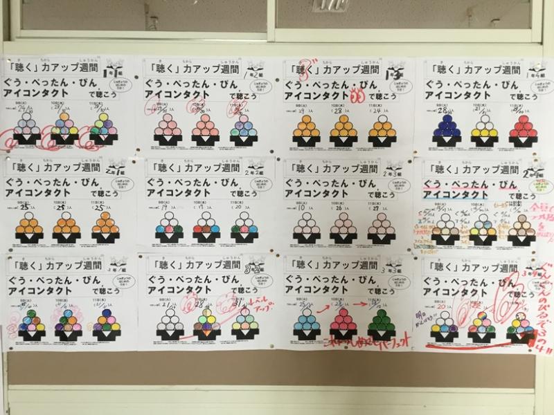 「きく力を高めよう」は、第2週の9日(火)~11日(木)を「聴く」力アップ週間として取り組みました。