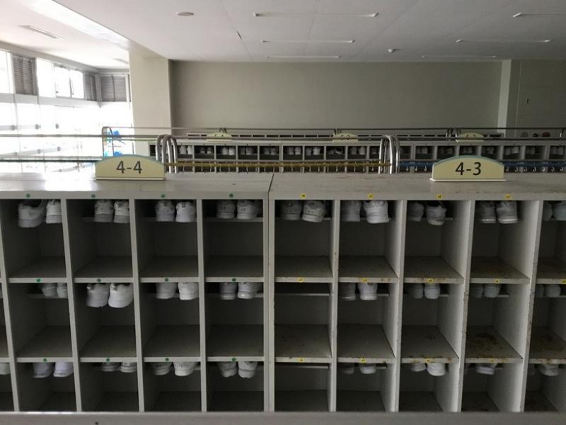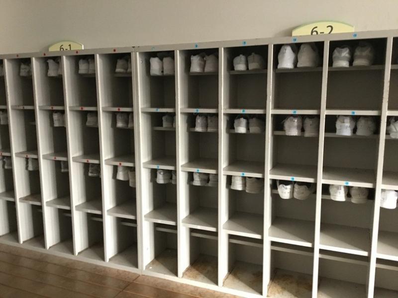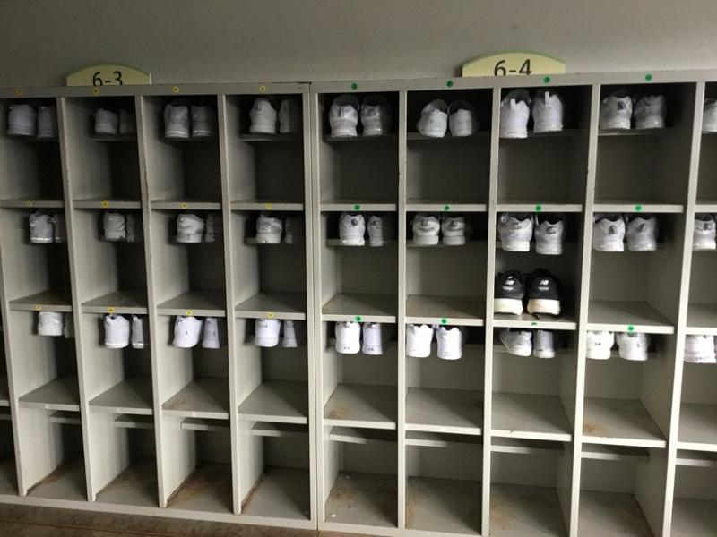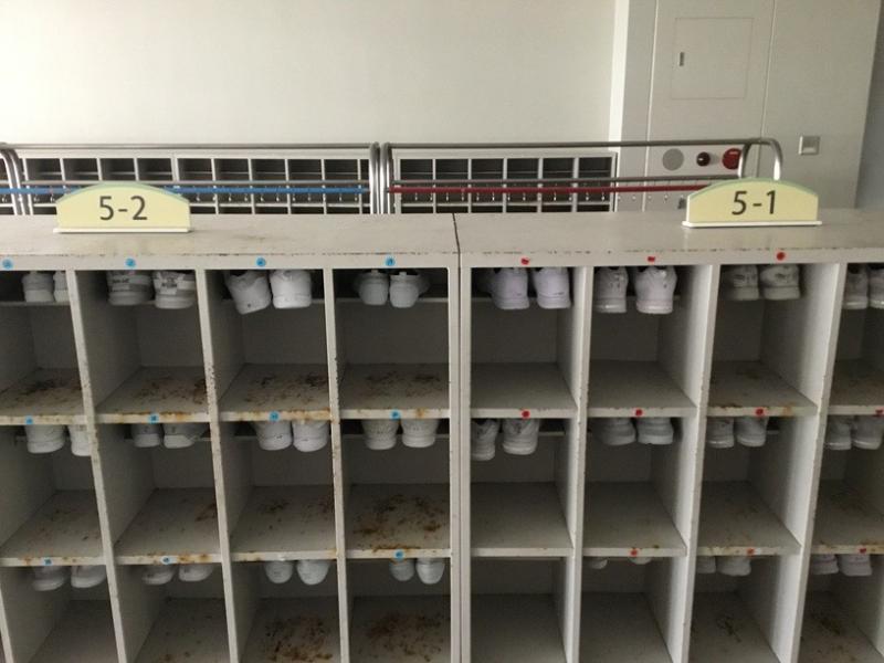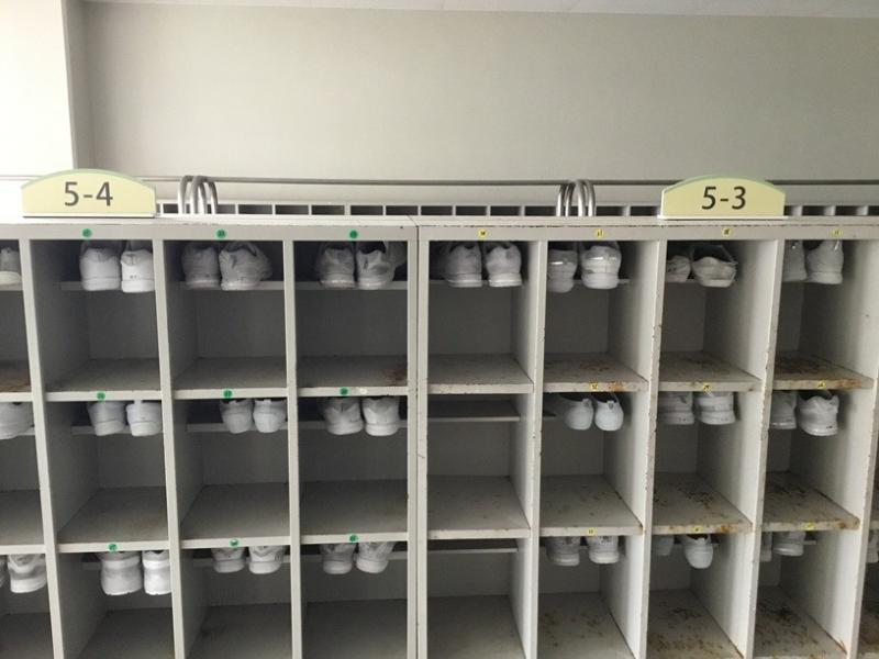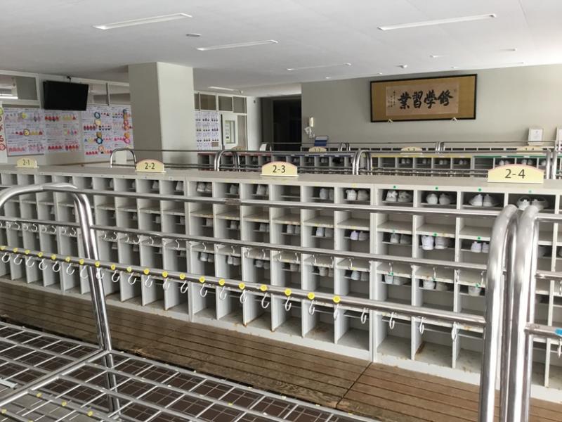 今朝の児童玄関を見ると、内履きズックがしっかりと下足箱に入っています。