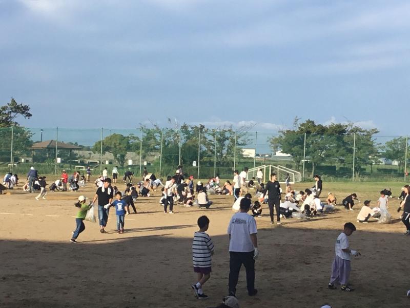 青空のもと たくさんの保護者やふよっ子の皆さんの参加により 運動場の草刈りや校舎の窓拭きを行いました。