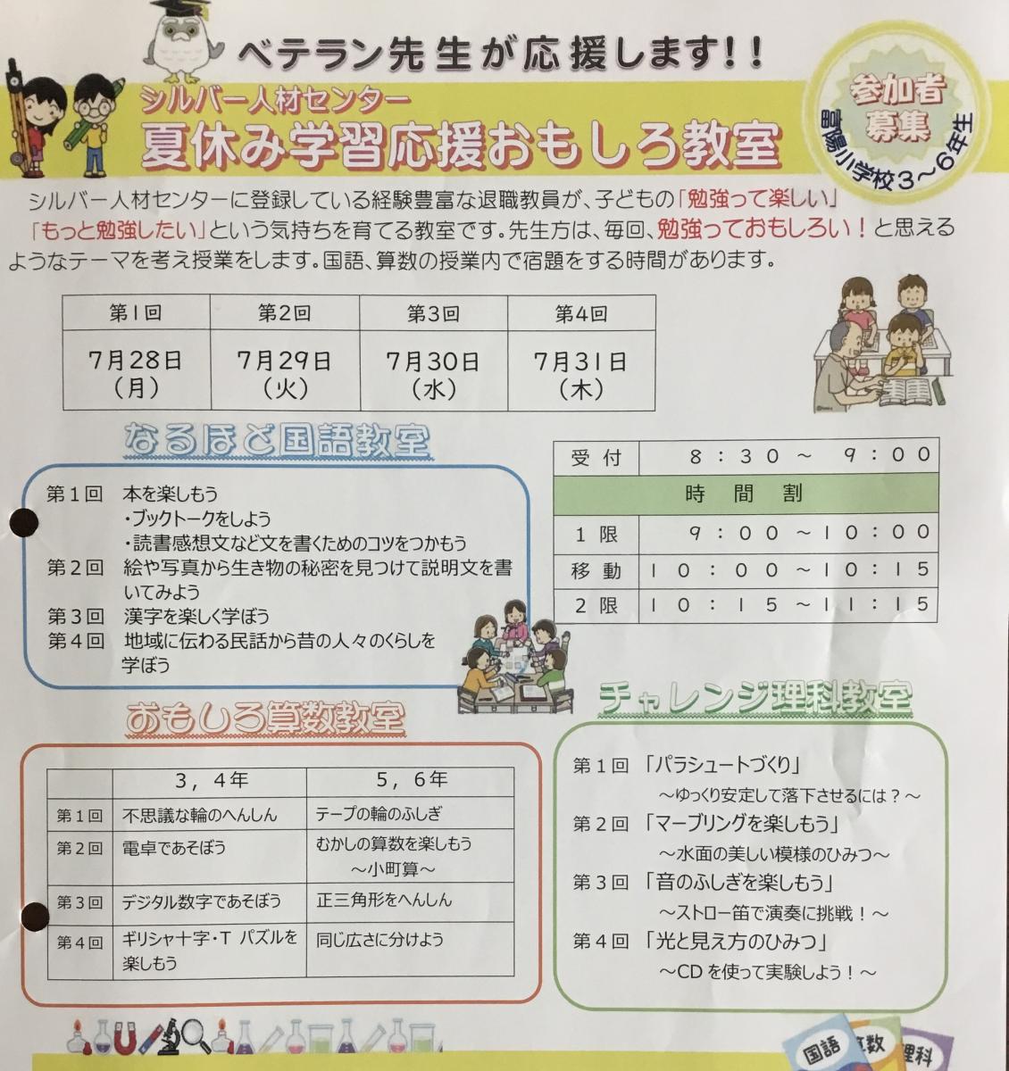 野々市市シルバー人材センター教育班の皆さんによる「夏休み学習応援おもしろ教室」が4日間実施されました。