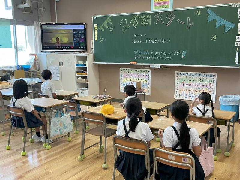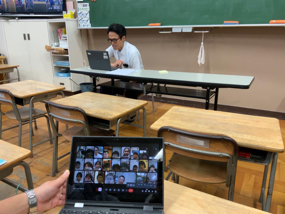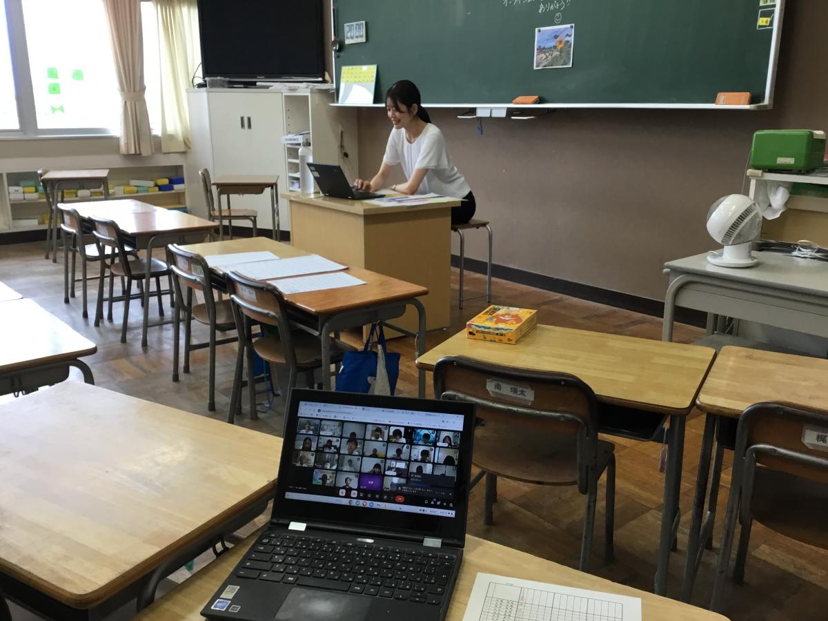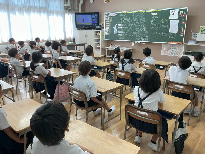 前半は1・2・3年生、後半は4・5・6年生が学級ごとに友達や担任の先生と画面上で再会しました。