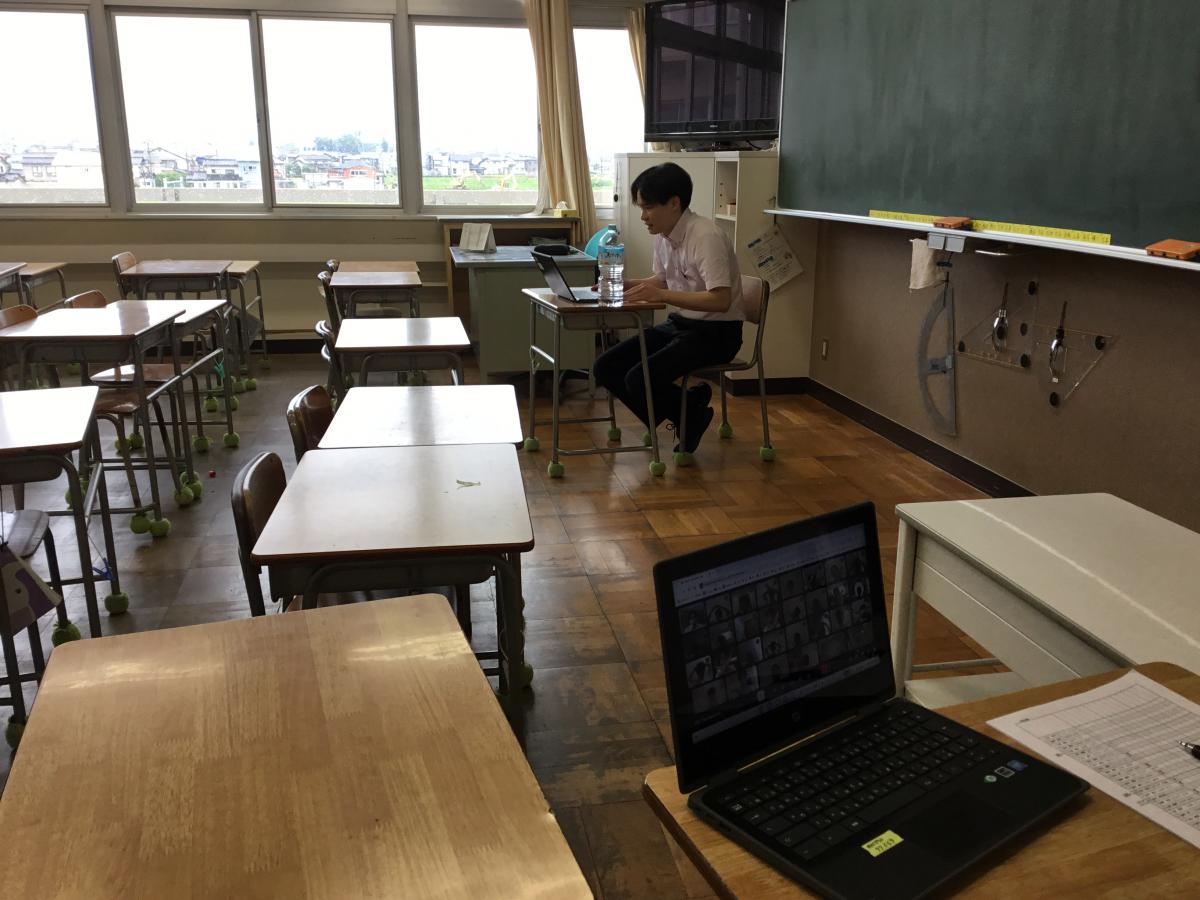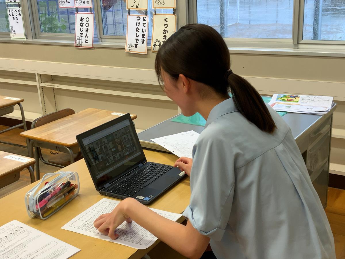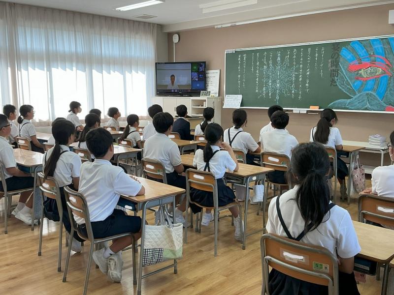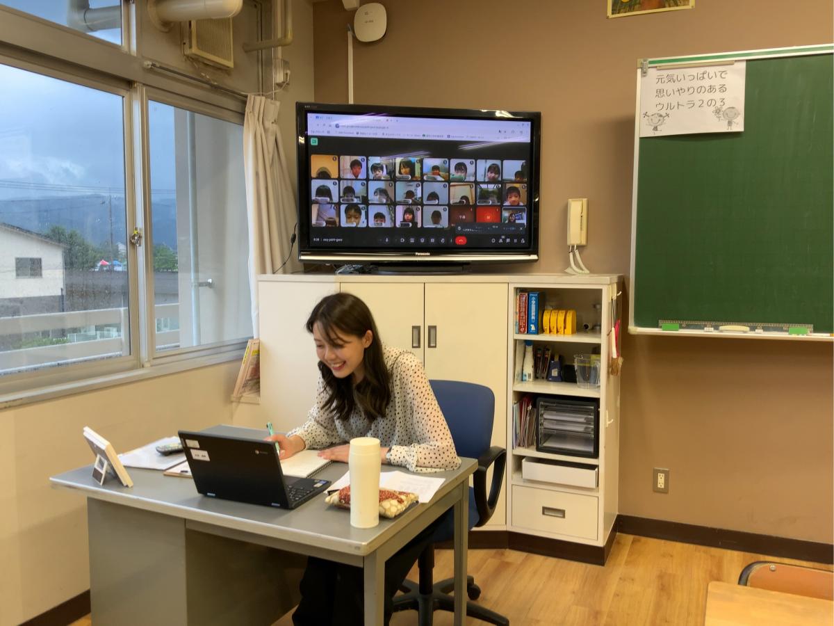 前半は1・2・3年生、後半は4・5・6年生が学級ごとに友達や担任の先生と画面上で再会しました。