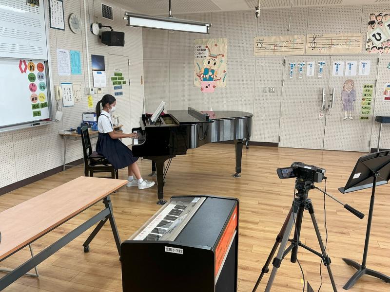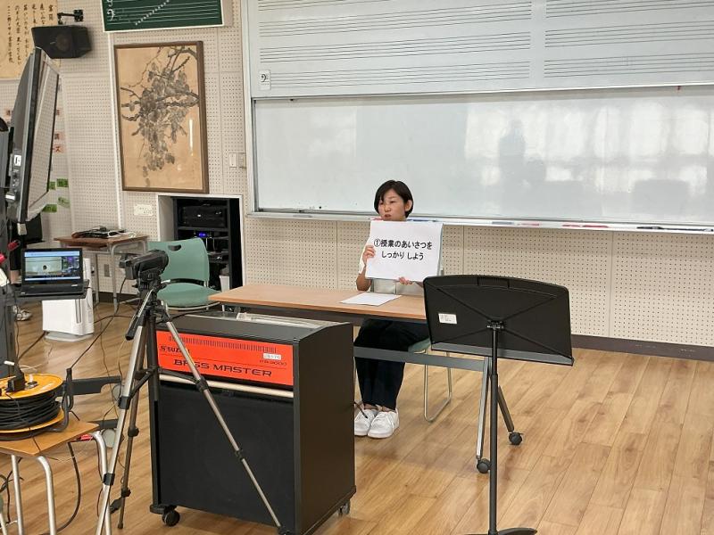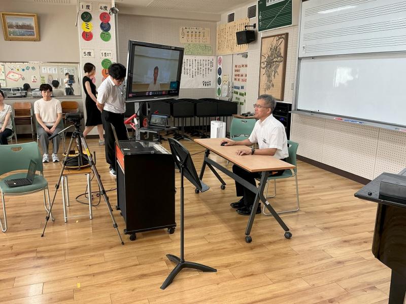 第1音楽室からお話をする先生が、各教室に向けて配信をしました。