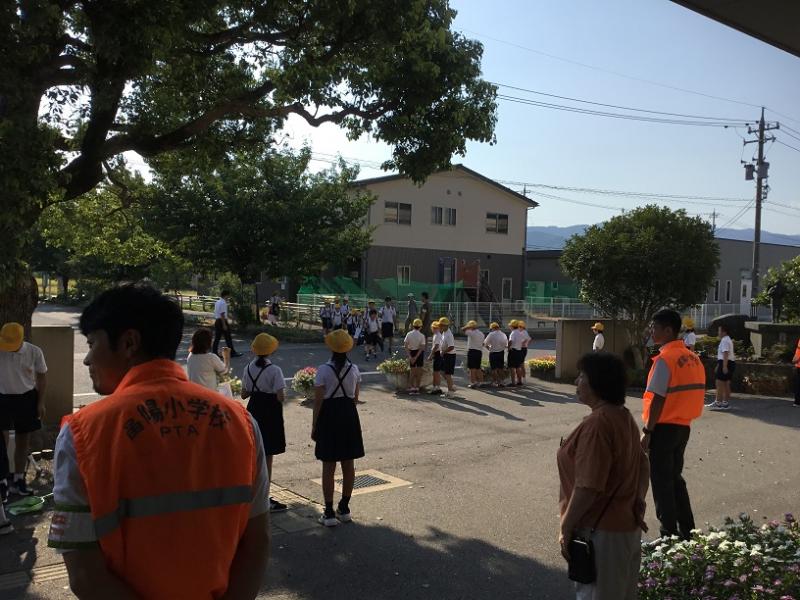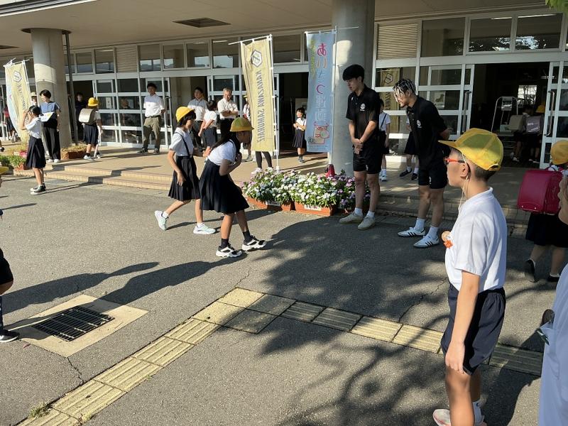 2学期スタートの朝は、「愛と和 ののいち5万人あいさつ運動」で始まります。
