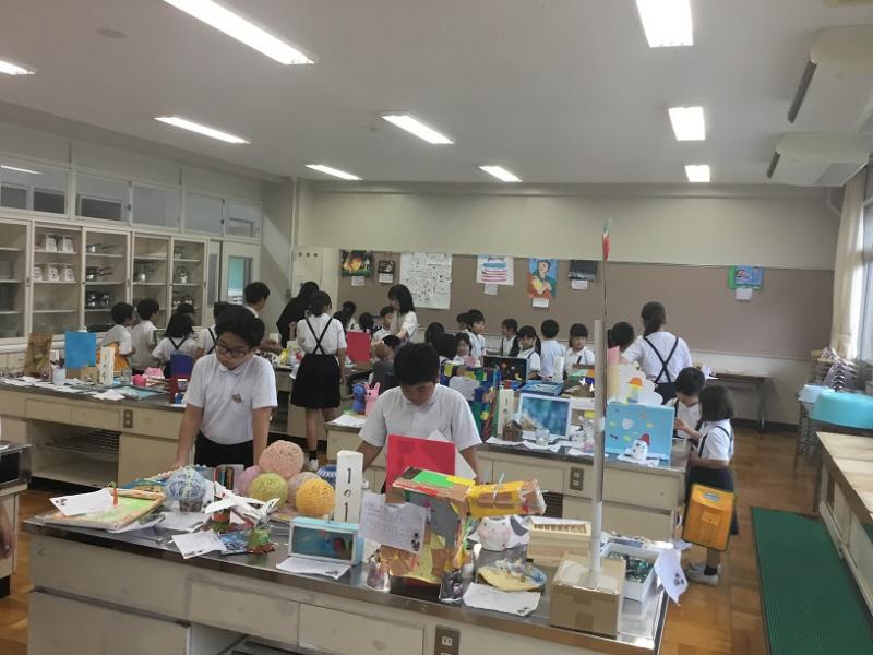 夏休みに取り組んだ力作が理科室や家庭室にたくさん展示されました。