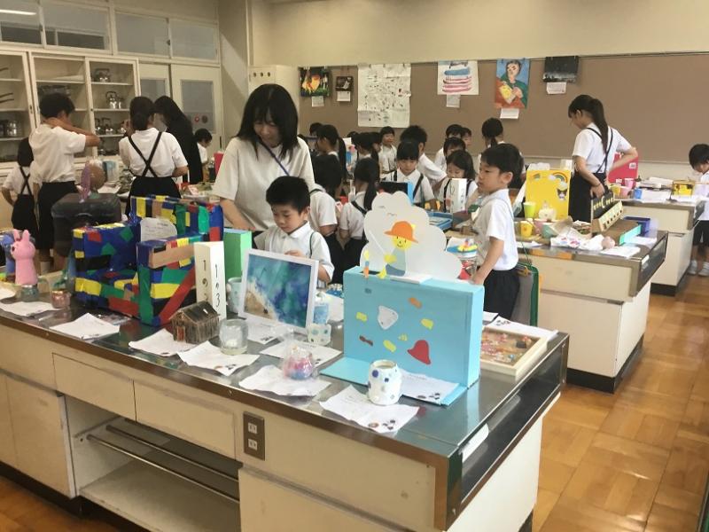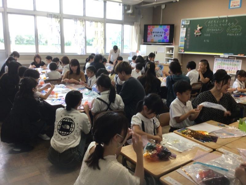 低学年では、親子で一緒に図工の授業をする学級もありました。