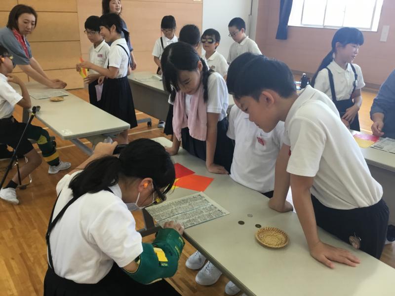 4年生の総合的な学習の時間は、福祉をテーマに『「人にやさしい町」への工夫』について学習に取り組んでいます。