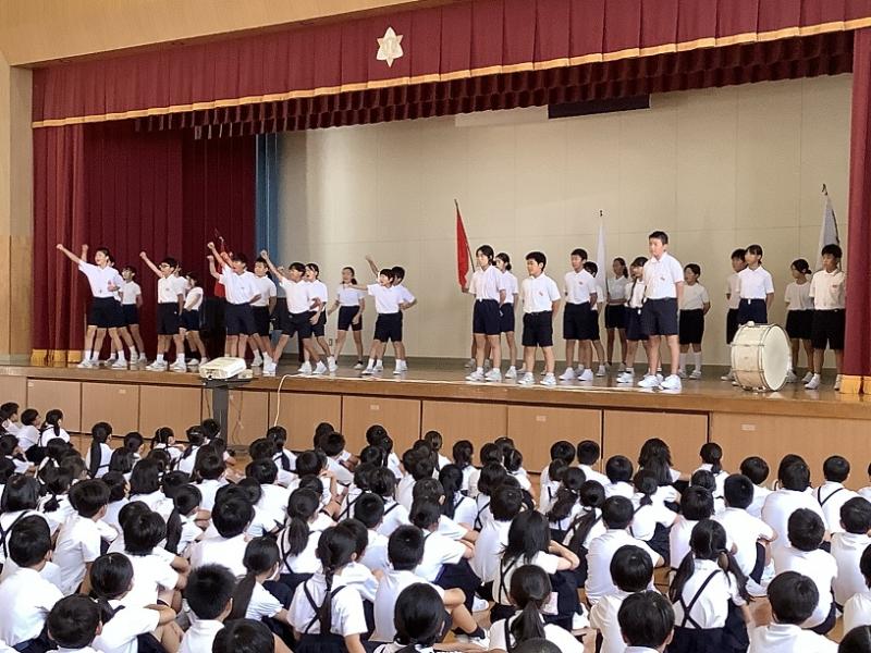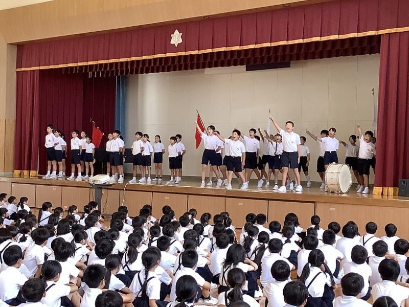 自分たちの応援を覚えて 運動会では心を合わせて応援しましょう。