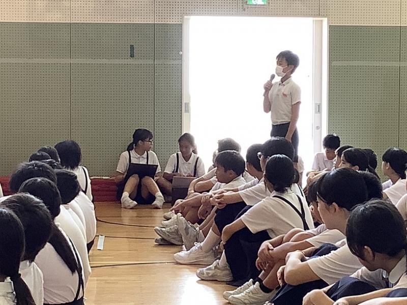 1限目 全校が体育館に集まり、2回目の児童集会を行いました。