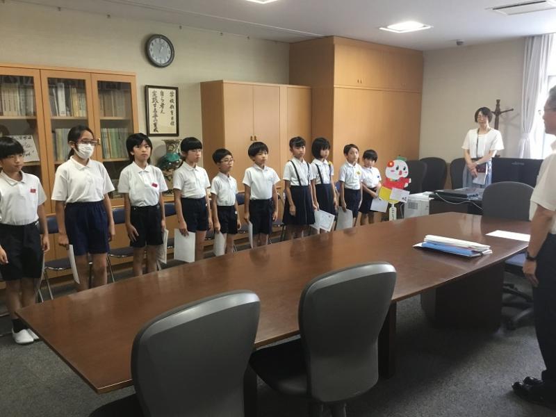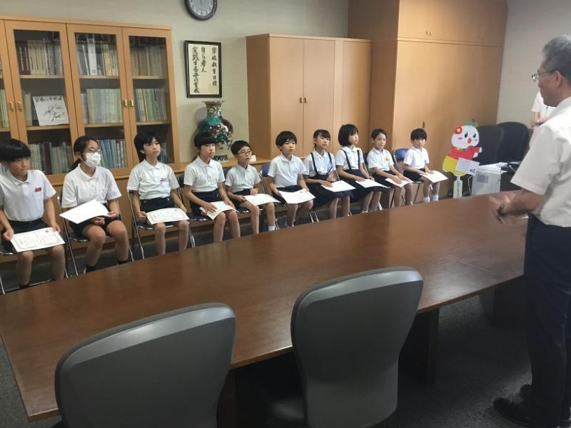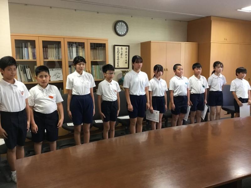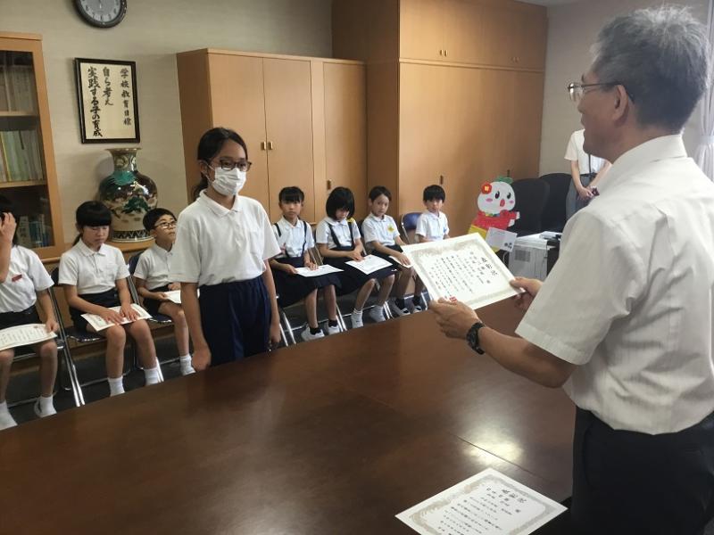 昼休みに 野々市市調べる学習コンクールの校長賞に選ばれた1~4年生10名の表彰式を行いました。