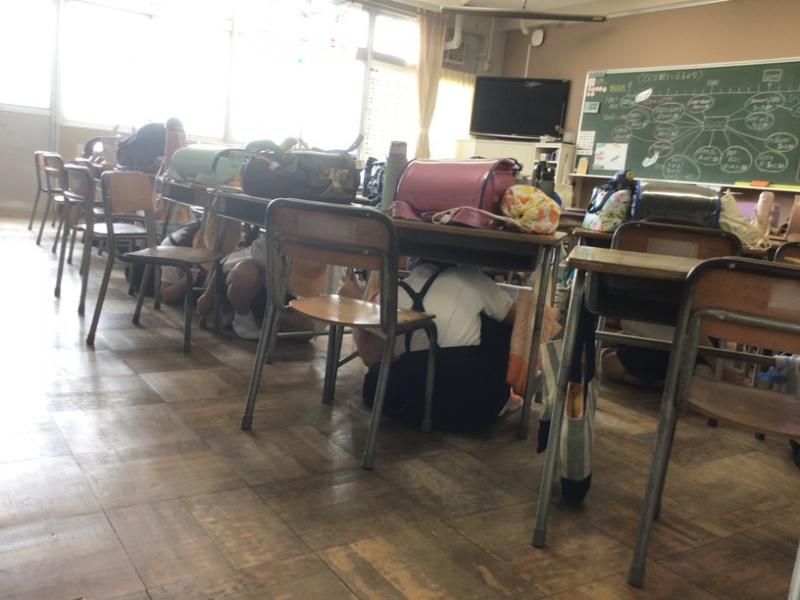 児童は机の下に潜り 身を守る行動を取った後、体育館に集まった保護者が教室に迎えに来るまで待ち、確実に引き渡す流れで訓練を行いました。