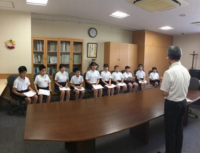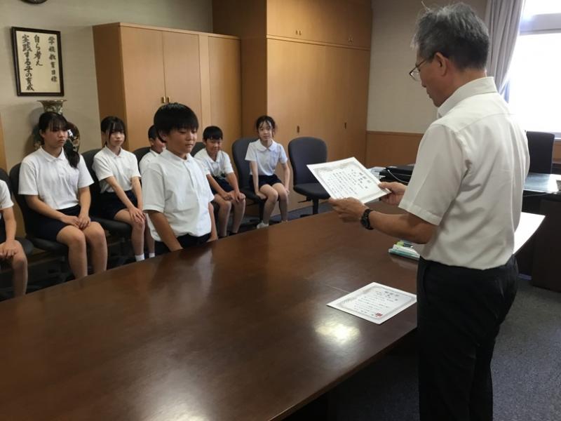 昼休みに 野々市市調べる学習コンクールの校内表彰を行いました。