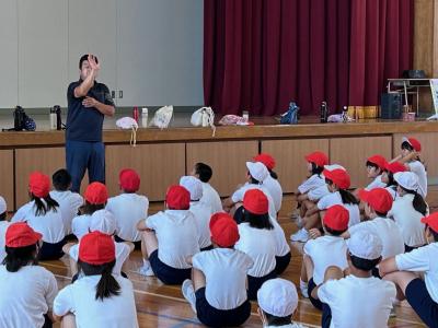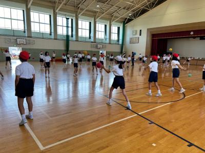 6月11日(火)6年生の子供たちが、県立大学宮口教授の指導のもと、投げる動作の学習を行いました。