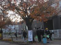 学校前の桜の木が紅葉し、今はどんどん落ちてきます。