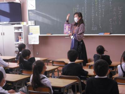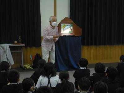 今日はのまりん先生に4年生が紙芝居を読んでいただきました。