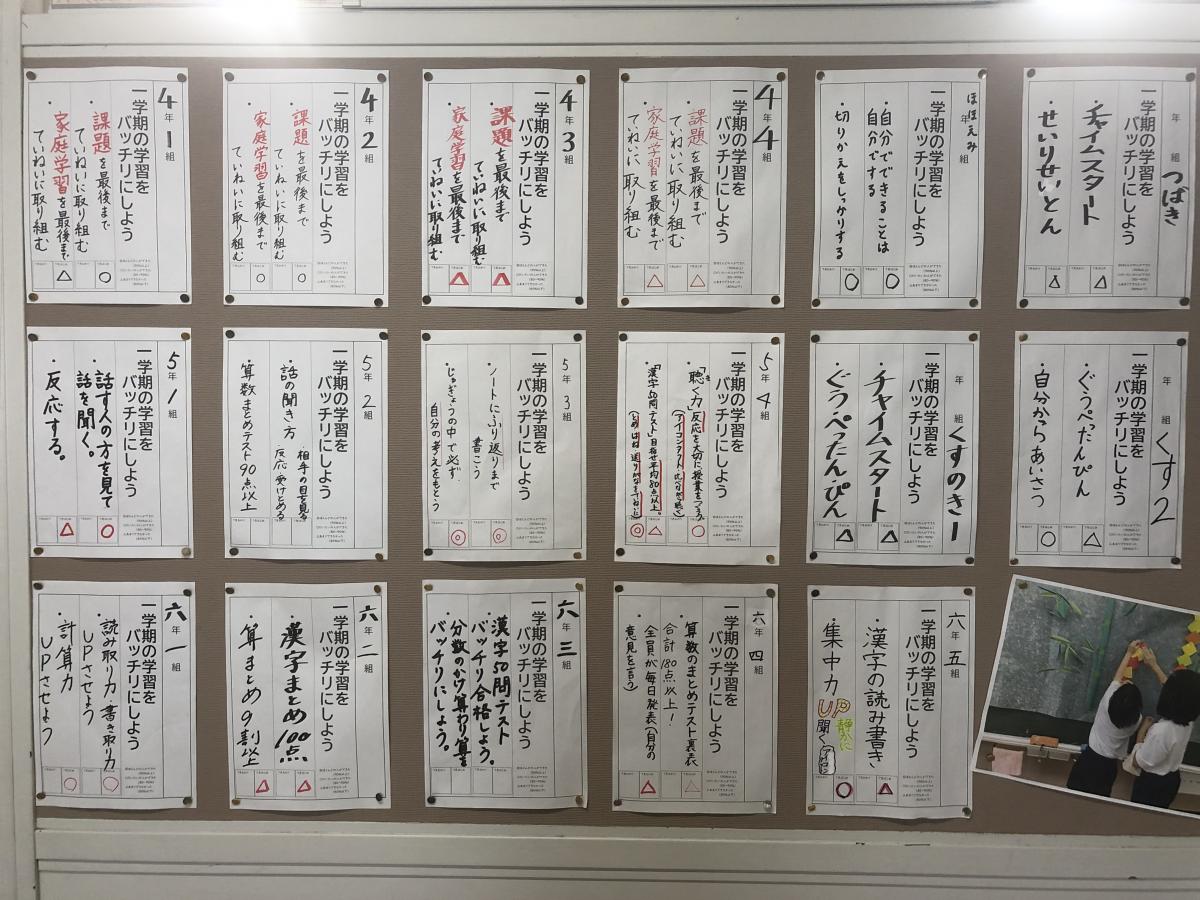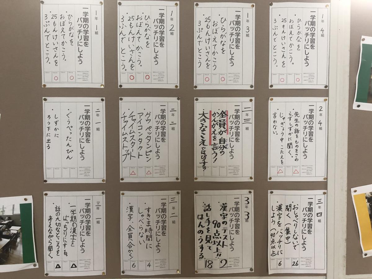 すべての学級で担任の先生と子どもたちが一緒に、自分たちの目標を2つ決めました。