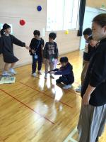 5年生は、体育館でじゃんけん列車。