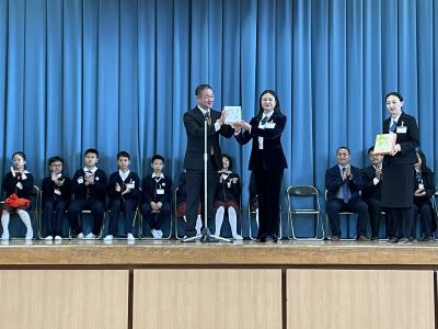 最後に、子どもの代表がお礼の言葉と花束を渡しました。